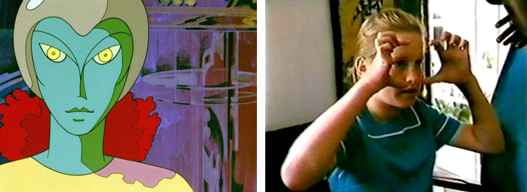 Also popular was Halfway Across the Galaxy and Turn Left – an Australian children’s sci-fi series following aliens on the run from their home planet who have to disguise themselves as a human family. It includes a motif of children joining hands and communicating telepathically with an orbiting spaceship to manifest physical objects (two Ariel girls claim to have held hands before seeing an alien being materialise right in front of them). Delta Space Mission was a Romanian cartoon movie (aired the same afternoon as the Ariel sighting) involving a female alien with blue/green skin, large almond-shaped eyes, and various depictions of spacecraft.